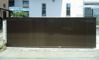 | ブロック積み完了です。そして、フェンスの支柱を建てました。 | フェンス施工後です。三協アルミ・形材門扉・カムフィ3型・ダークブロンズ・2008タイプです。 |